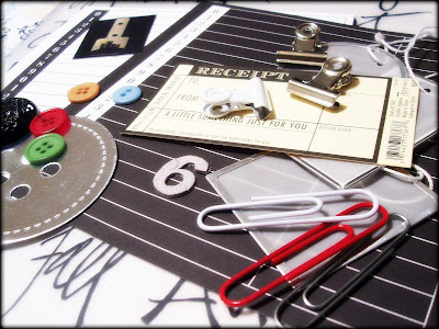 I couldn't find my exacto knife at the time (I still can't seem to find it and it's been about a year now) so....I used buttons to cover the Clipboard portion at the top. I think it worked in my favor....that row of buttons made it all come together somehow.